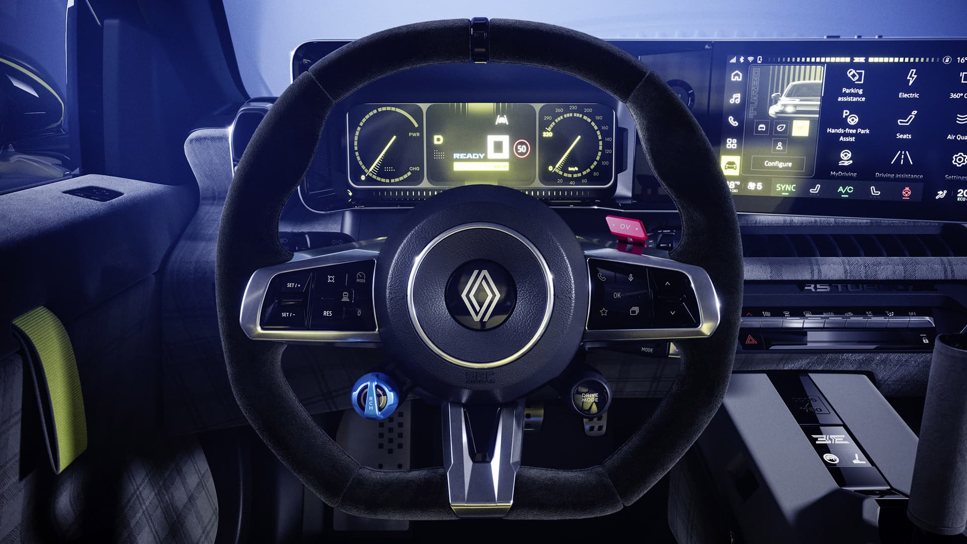 Renault 5 Turbo 3E sin innebygde teknologi er lett å benytte. OpenR Link-multimediesystemet med innebygd Google gir en sømløs opplevelse og mer enn 50 apper for navigasjon, musikk, podkaster, underholdning, nyheter og mer. De avanserte førerassistansesystemene gjør kjøringen din på veien tryggere. De er aktivert som standard, men kan delvis eller fullstendig deaktiveres etter behov.